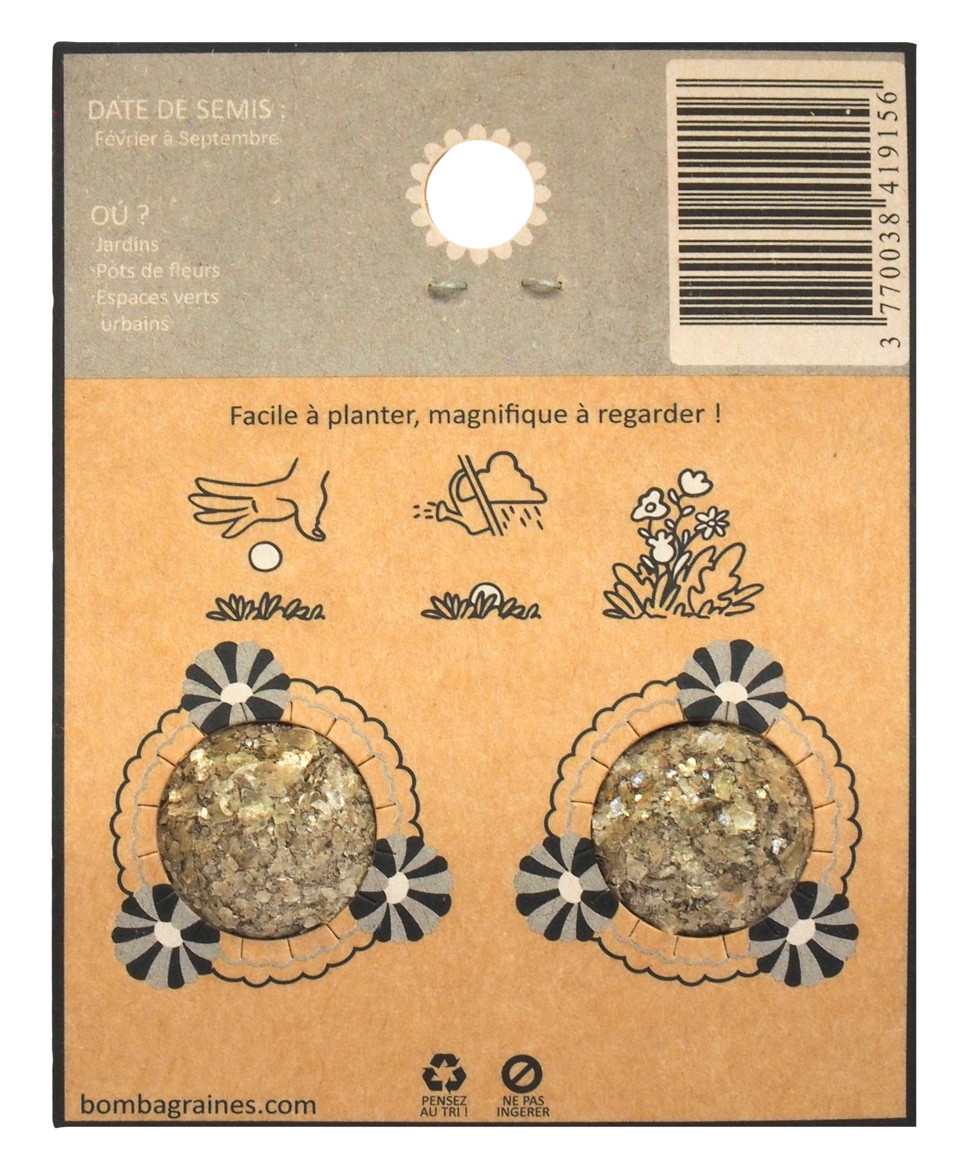 - d'un mélange de graines de fleurs aux couleurs de la bombe de graines.
