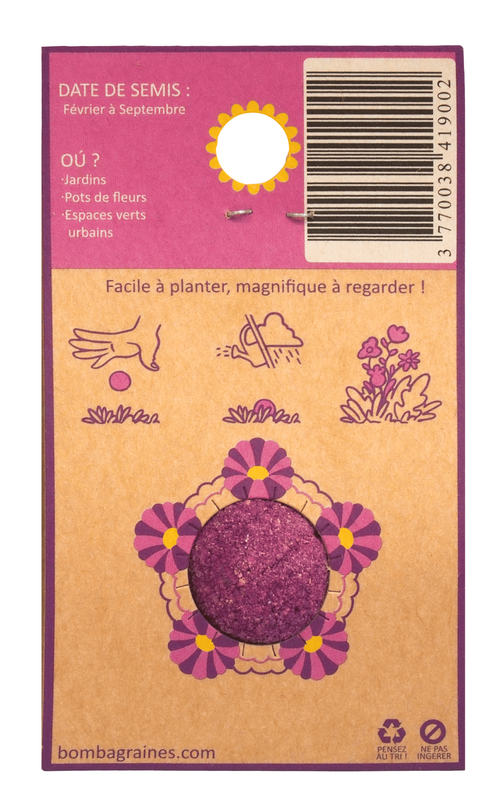 - Choisissez la couleur des fleurs que vous prĂ©fĂ©rez ! La couleur de la bombe de graines correspond Ă la couleur de vos futures fleurs. La Bombamethyste se compose uniquement de fleurs violettes.Â