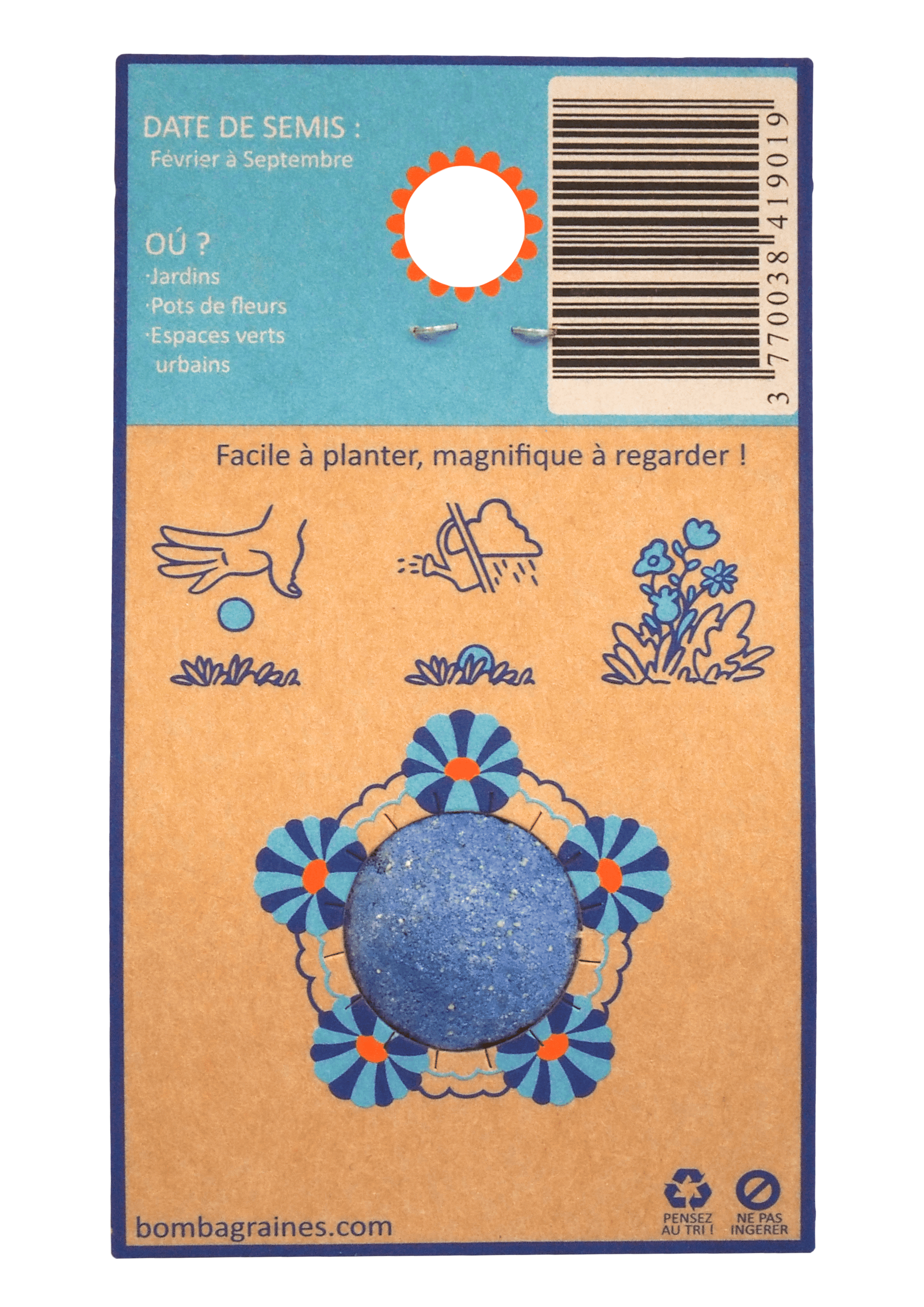 - Choisissez la couleur des fleurs que vous préférez ! La couleur de la bombe de graines correspond à la couleur de vos futures fleurs. La Bombazul se compose uniquement de fleurs bleues.